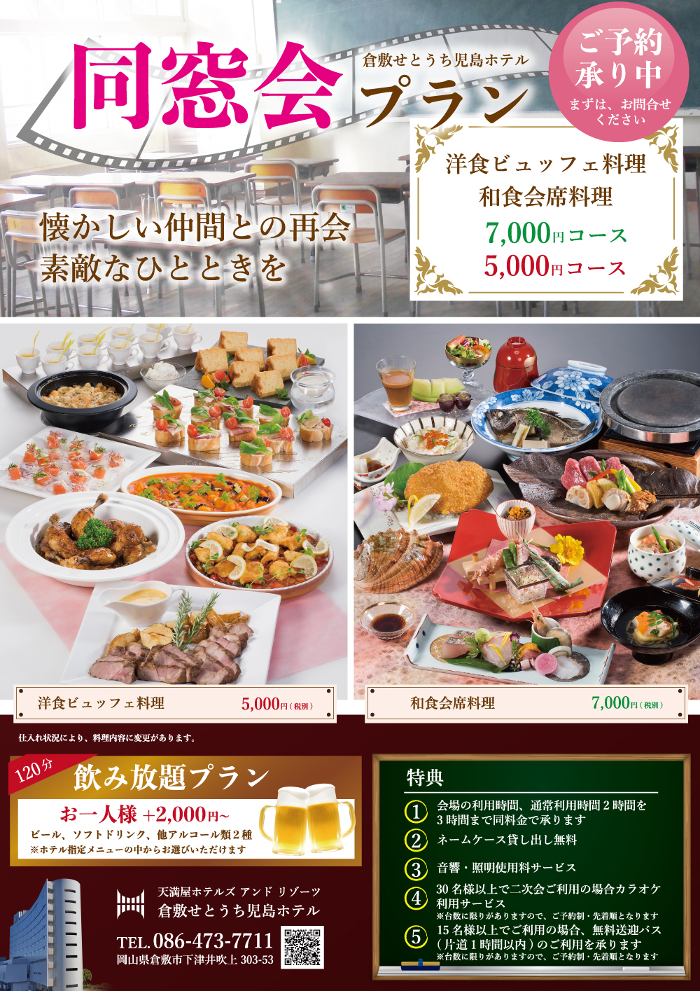 同窓会・OB会・同期会・クラス会など懐かしいお仲間と大切なひと時を。ホテル自慢の料理とおもてなしで特別な日をご提案します。