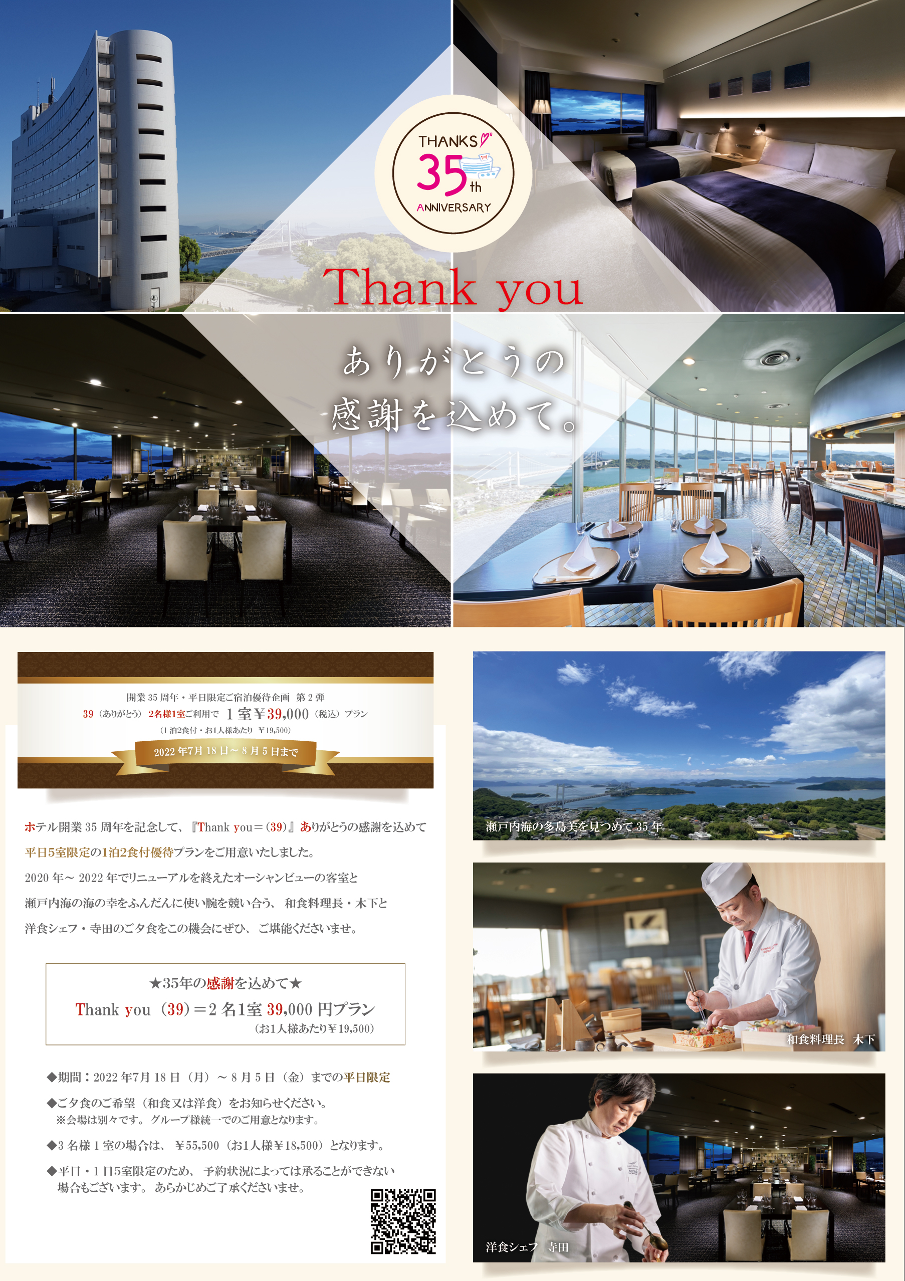 ★ホテル開業35周年記念・特別優待ご宿泊プラン第2弾<2022年7月18日~8月5日まで>★