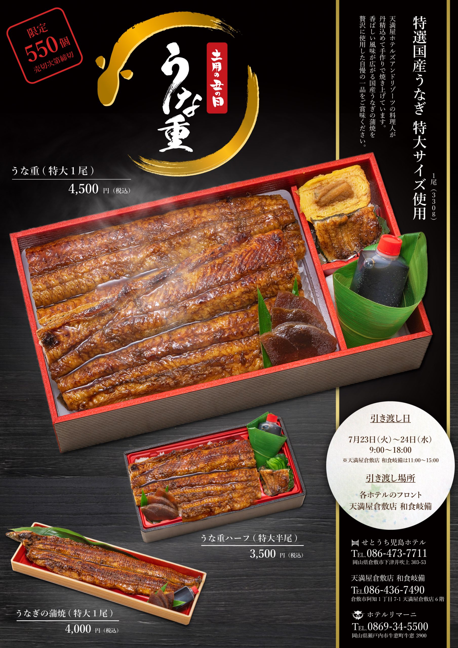 特選国産うなぎ 特大サイズ使用うな重販売中