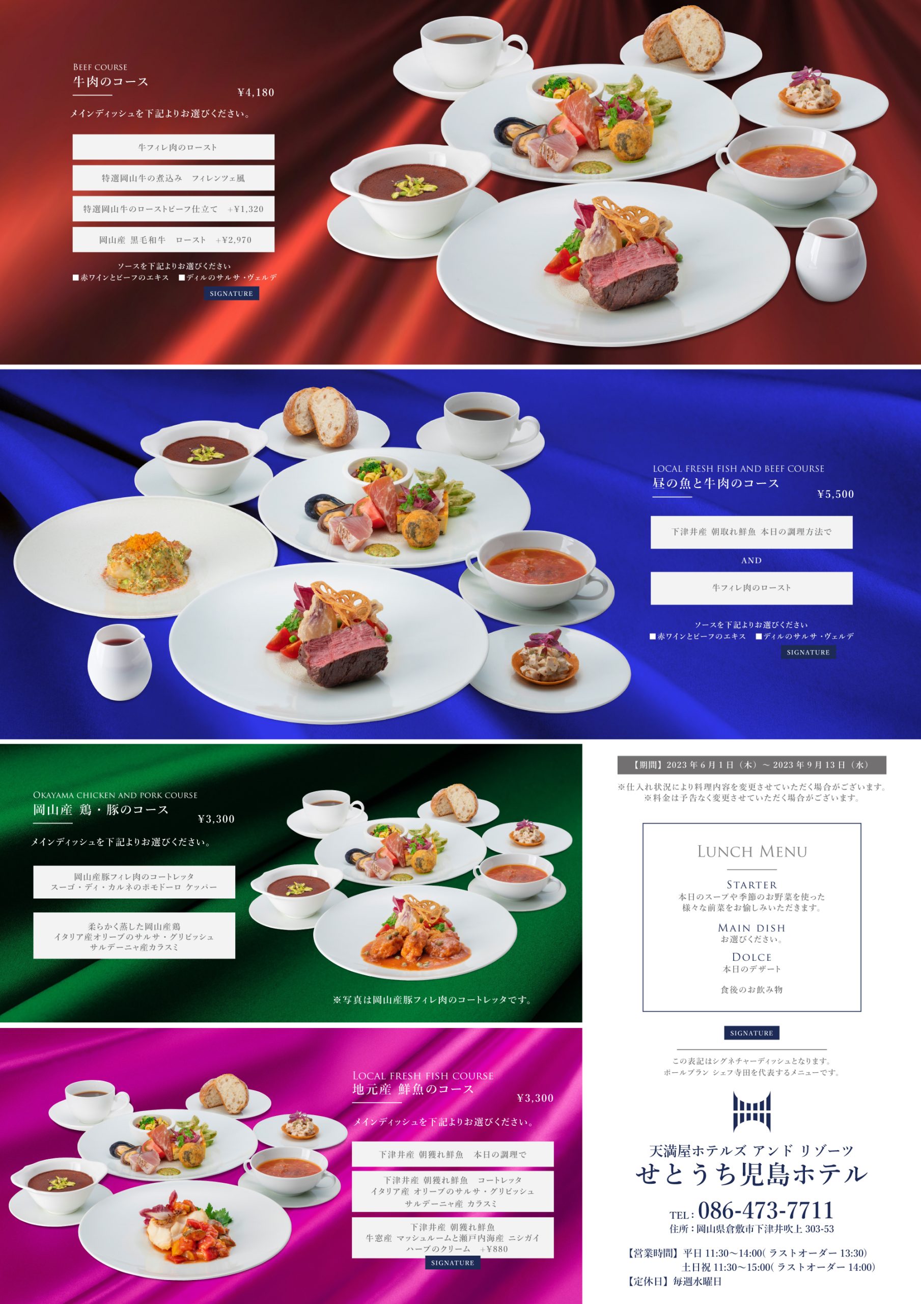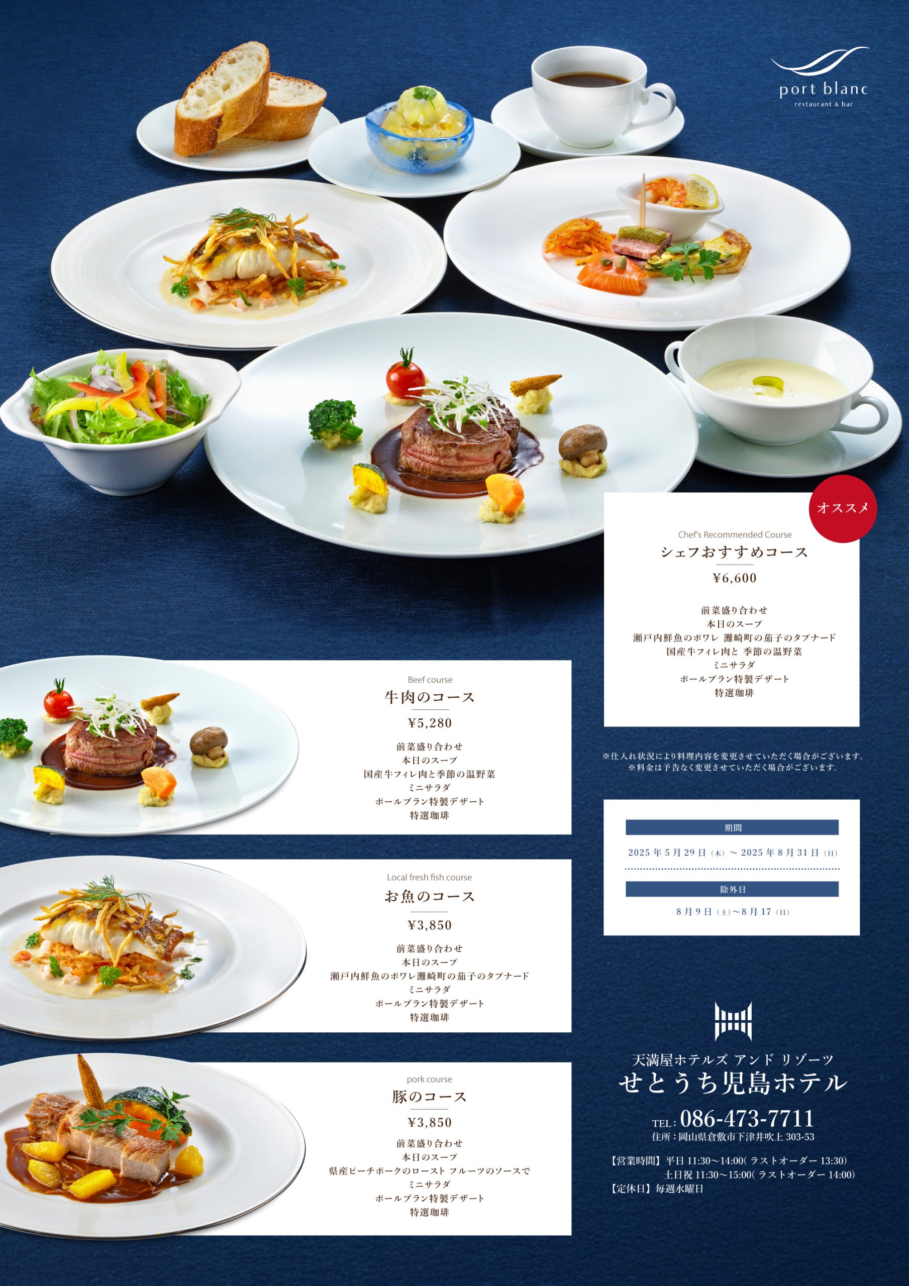 豊かな岡山県の風土を素直に表現した料理の数々をお楽しみいただけます。